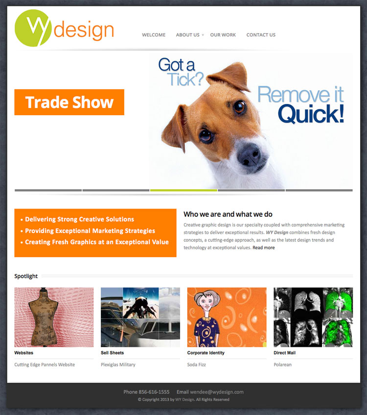 WY Design provides each client, no matter how large or small, with individualized attention and exceptional service. Whether it's a strategic ad campaign, branding, trade show graphics, eblast design or a small scale project, WY Design delivers the same amount of individualized dedication.